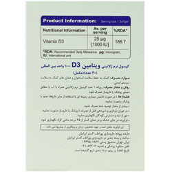 هر کپسول حاوی 1000 واحد بین المللی ویتامین د3
