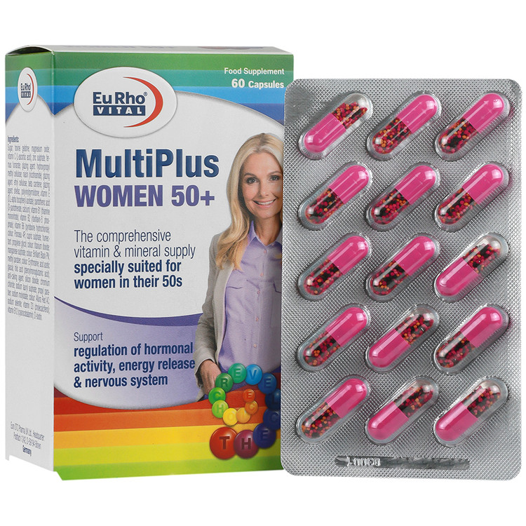 - مولتی پلاس خانمهای بالای 50 سال یوروویتال، کمک به تامین مواد مغذی مورد نیاز بدن زنان در این سنین