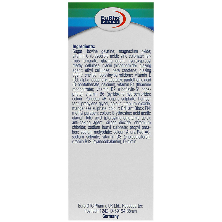 - حاوی ویتامین های D3 ،B12 ،B6 ،B5 ،B2 ،B1 ،C ،E، بتاکاروتن، فولیک اسید، نیاسین، بیوتین، آهن، مس، منیزیم، منگنز، کروم، سلنیوم، زینک و مولیبدن