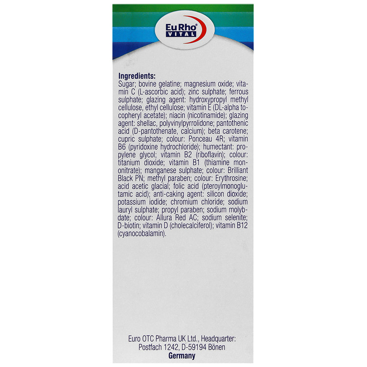 - حاوی بتاکاروتن، ویتامین های D3 ،B12 ،B6 ،B5 ،B2 ،B1 ،C ،E فولیک اسید، نیاسین، بیوتین، آهن، مس، منیزیم، ید، منگنز، کروم، سلنیوم، زینک و مولیبدن