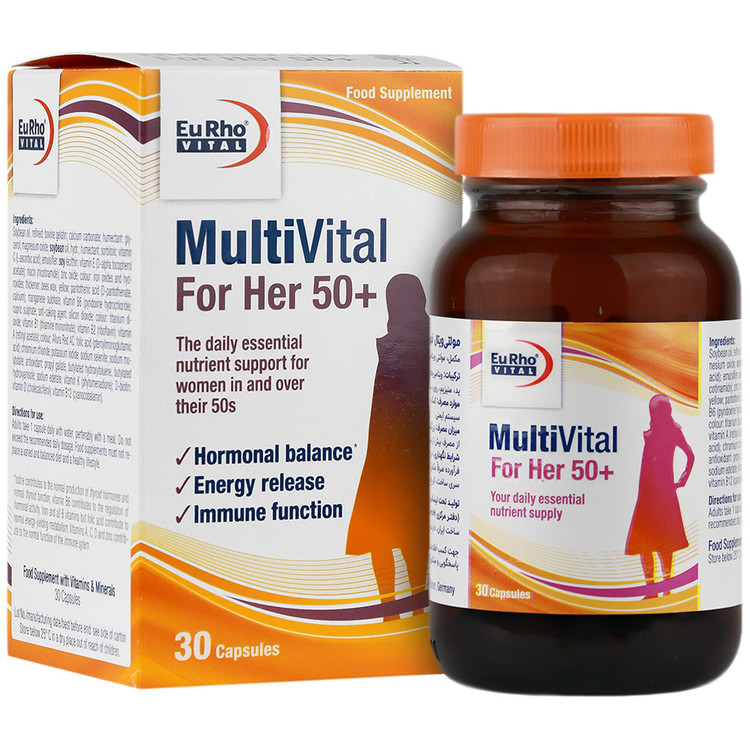 مولتی ویتال یوروویتال برای خانم های بالای 50 سال، تامین کننده ویتامین ها و مواد معدنی ضروری، خصوصا مناسب برای خانم های بالای 50 سال می باشد.
