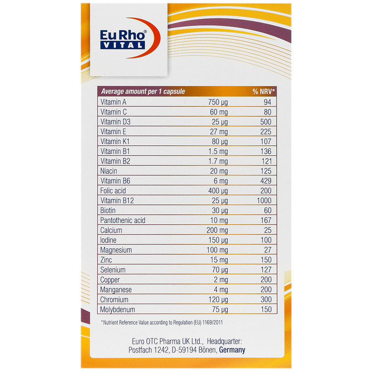 - مولتی ویتال فور هر 50 یوروویتال، برای کمک به ارتقای سلامت عمومی بدن