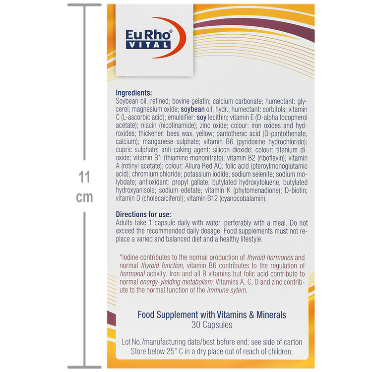 - ترکیبات: ویتامین های A، D3، E ،C ،B1 ،B2 ،B3 ،B5 ،B6 ،B12 ،K فولیک اسید، بیوتین، کلسیم، ید، منیزیم، روی، سلنیوم، مس، منگنز، کروم و مولیبدن
