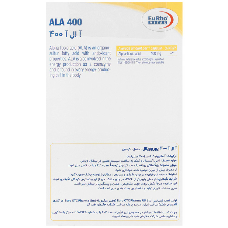 آ ال آ 400 میلی گرم آلفا لیپوئیک اسید یوروویتال