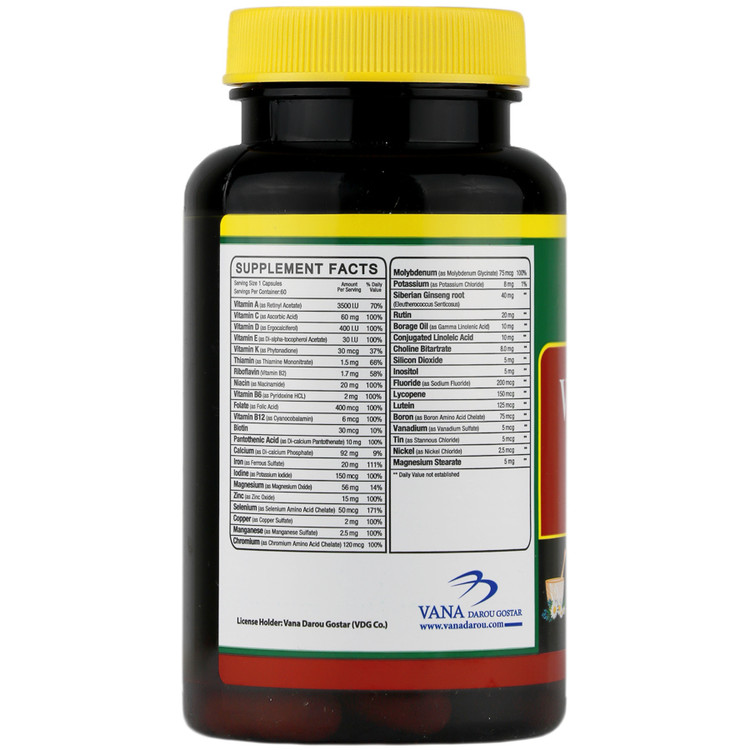 - مولتی ویتامین وانا مولتی، قابل استفاده جهت کمک به رفع کمبود ویتامینها و مواد معدنی مورد نیاز بدن