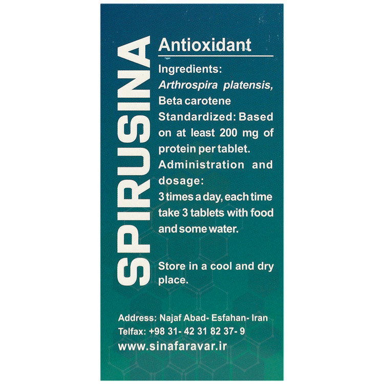 - اسپیروسینا، فرآورده طبیعی فراهم کننده جلبک اسپیرولینا و بتاکاروتن