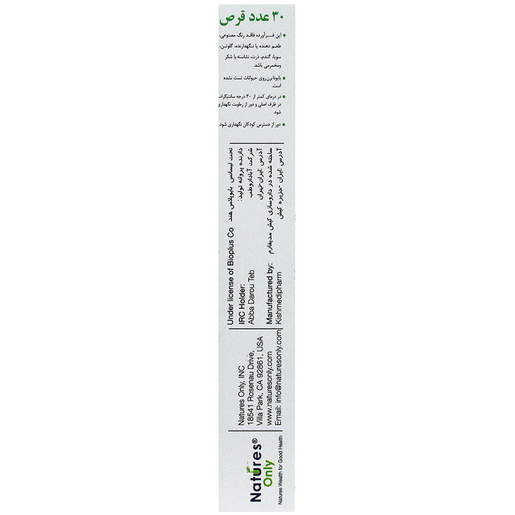 - بدون گلوتن، سویا، گندم، ذرت، نشاسته یا شکر و مخمر