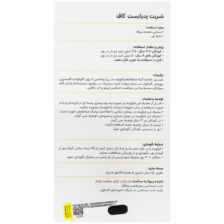 این محصول تحت امتیاز و لیسانس پدوریفمپ کشور پرتغال، دارنده پروانه ساخت شرکت کیان سلامت پایدار و در شرکت داروسازی الحاوی در ایران تولید شده است.
