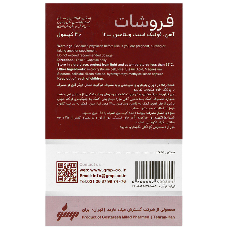 - فروشات، مکمل حاوی آهن به فرم فروس بیس گلیسینات