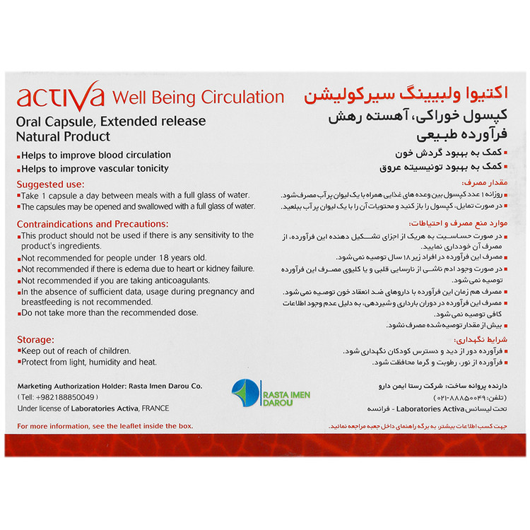 - اکتیوا ولبینگ سیرکولیشن، مفید برای گردش خون و تونیسیته عروقی