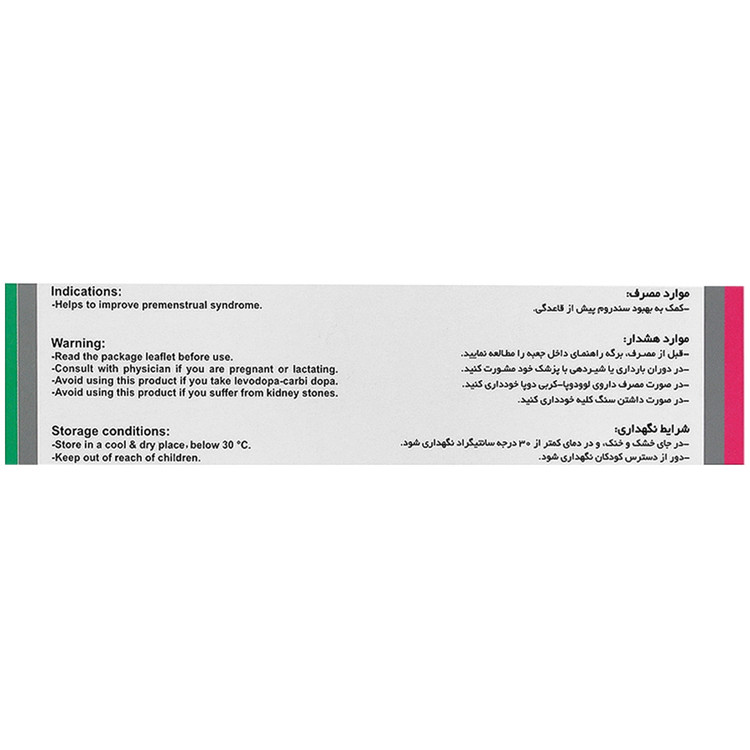 برای تاثیر بهتر، این فراورده را دو هفته پایانی سیکل قاعدگی مصرف شود.