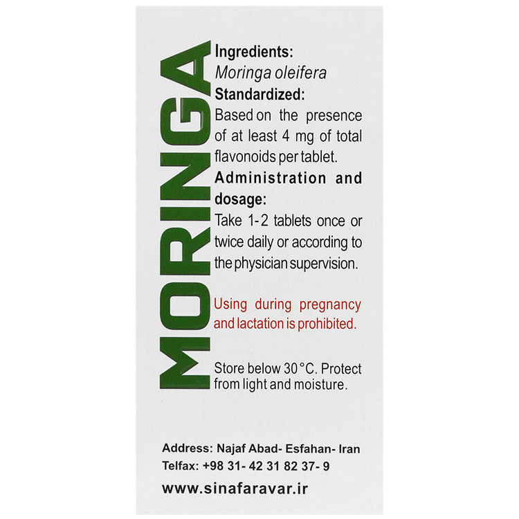 - مصرف در دوران بارداری و شیردهی: مصرف قرص مورینگا سینا فرآور طی دوران بارداری و شیردهی توصیه نمی شود.