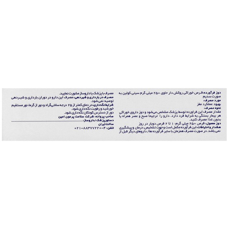 دوز معمول: قرص 250 میلی گرم: 1 تا 2 قرص دو بار در روز.