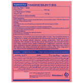 منیزیم یکی از فراوان ترین مواد معدنی در بدن می باشد. این ماده در عملکرد بیش از 300 آنزیم در بدن نقش داشته و واکنش های بیوشیمیایی گوناگونی را در بدن تنظیم می کند. جزء دیگر این فراورده، ویتامین ب6 می باشد که در متابولیسم آمینو اسید چربی و کربوهیدرات دخیل است.