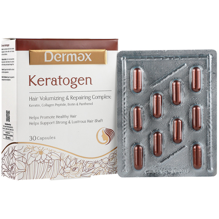 مکمل درمکس کراتوژن با دارا بودن کراتین و و کلاژن پپتاید سبب کمک به تقویت و استحکام ساقه مو می گردد. مواد مغذی موجود در این مکمل سبب درخشندگی و ضخامت تار مو و همچنین رشد مو می گردند.