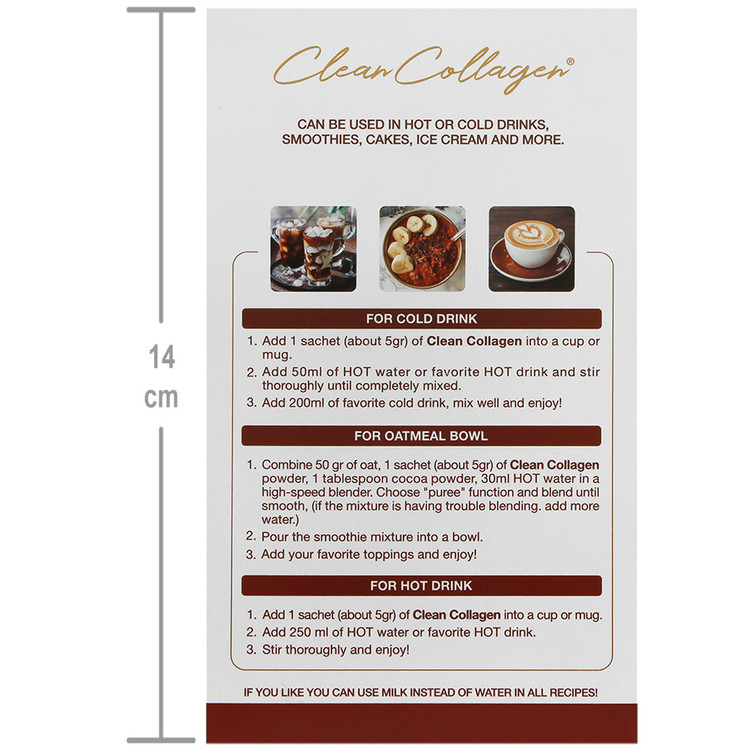 - ساشه کلین کلاژن قابل استفاده در نوشیدنیهای گرم و سرد، اسموتی، کیک و بستنی