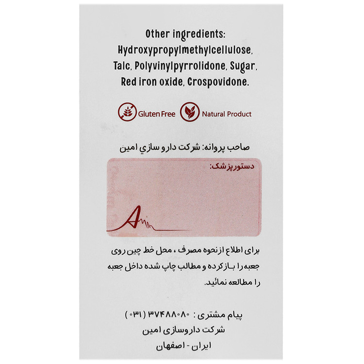هشدار مصرف:- توصیه های لازم: - در هنگام ارزیابی میزان دوز دریافتی آهن مورد نیاز خود به صورت مکمل، تمامی منابع آهن روزانه خود از جمله آهن دریافتی از غذا را در نظر بگیرید. - از مصرف خودسرانه این مکمل پرهیز کنید. - مصرف این مکمل بیش از 6 ماه مصرف نمی شود مگر در موارد خاص مثل بیماران مبتلا به منوراژی و یا بیمارانی که به صورت مداوم خون از دست می دهند. به طور کلی دوره درمان توسط پزشک تعیین می گردد. - در صورت فراموش کردن مصرف یک نوبت از فرآورده، آن نوبت را مصرف نکنید و از دو برابر کردن دوز بعدی پرهیز نمایید. - از مصرف همزمان با لبنیات، چای و قهوه خودداری و فاصله ی 2 ساعتی بین مصرف آن ها و مکمل آهن را رعایت فرمایید. - از مصرف این فرآورده در بیماران مبتلا به زخم معده، التهاب انتریت و کولیت اولسراتیو پرهیز شود. - از مصرف این فرآورده در بیمارانی که به طور مکرر خون دریافت می کنند پرهیز شود.