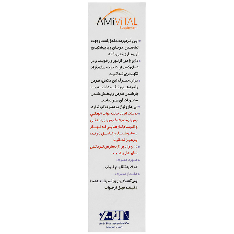روش مصرف:بزرگسالان روزانه یک عدد قرص 20 دقیقه قبل از خواب.