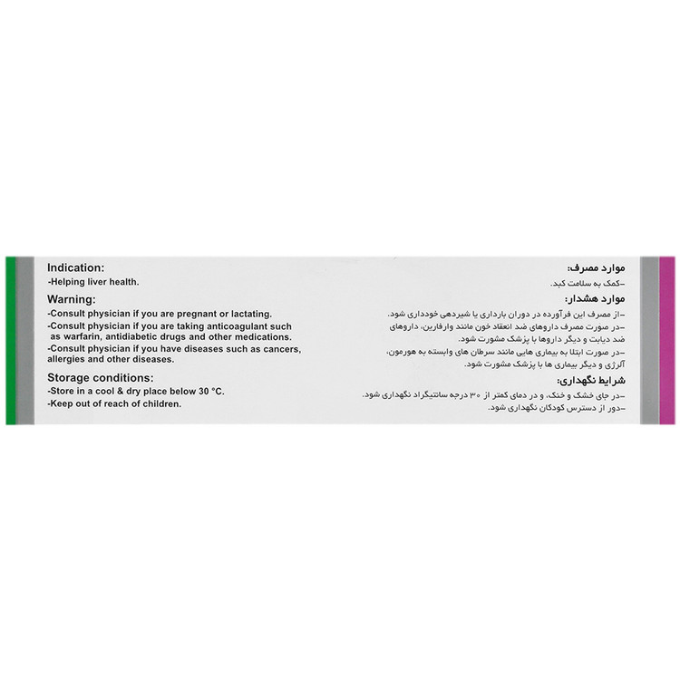 - حاوی 70 میلی گرم ماده فعال سیلیمارین در عصاره خار مریم