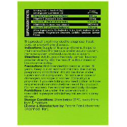 موارد احتیاط: در افراد زیر 18 سال مصرف نگردد. مصرف در دوران بارداری و شیردهی می بایست با نظر پزشک باشد. در صورت آسیب بسته بندی یا جعبه از مصرف خودداری شود. اگر همزمان با مصرف این مکمل، داروی دیگری مصرف می کنید یا در صورت ابتلا به هرگونه بیماری خاص، قبل از مصرف با پزشک متخصص مشورت شود. از مصرف بیش از مقدار توصیه شده خودداری شود.
