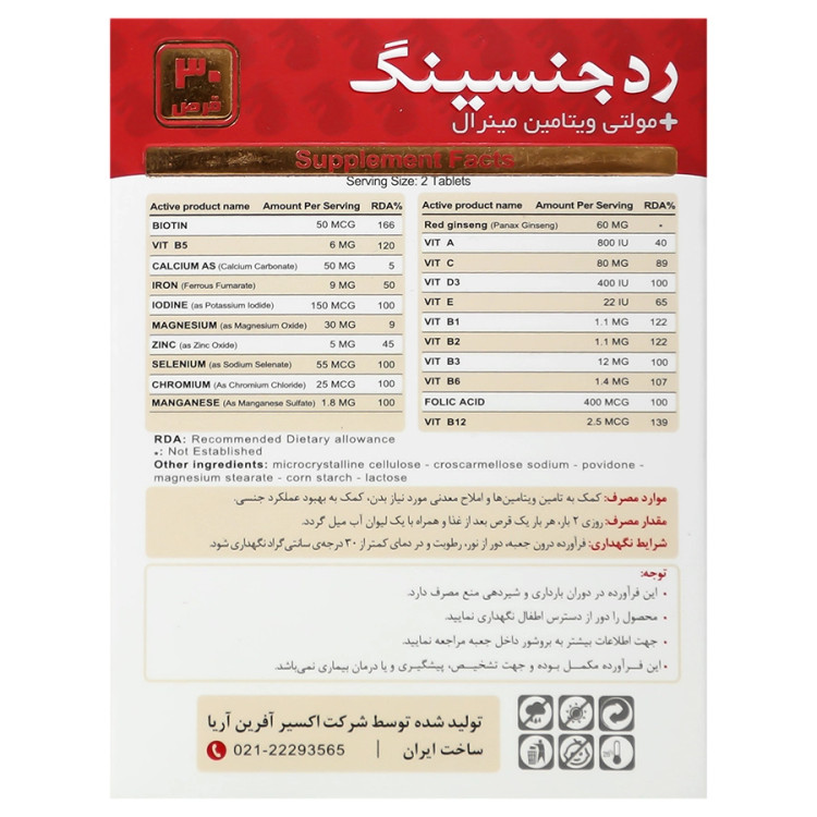رد جینسینگ و مولتی ویتامین مینرال اکسیر آفرین آریا