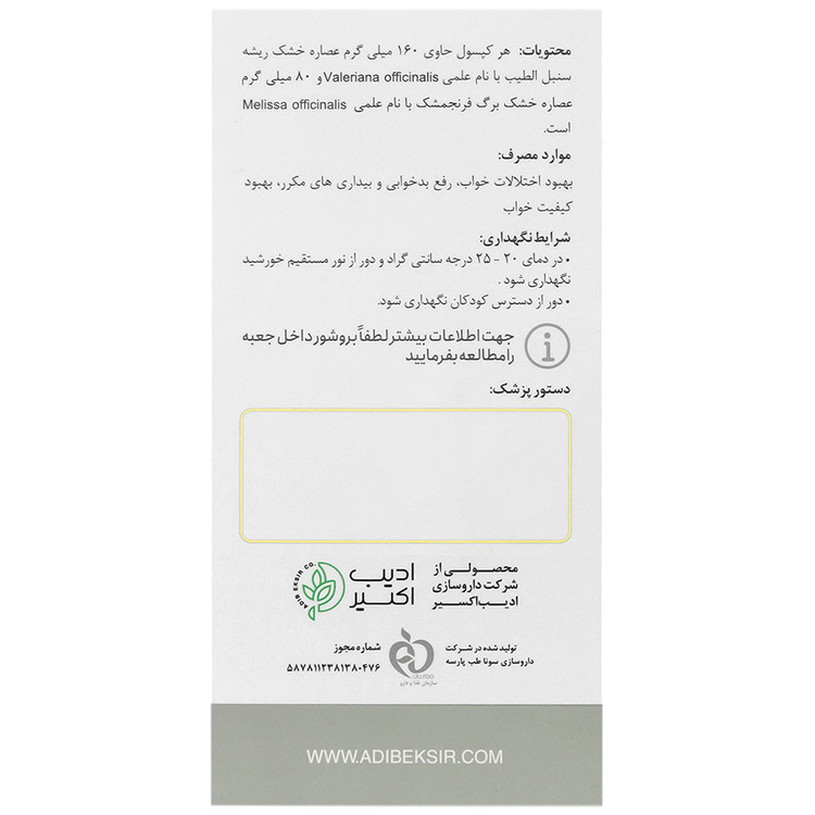 شرکت سازنده: شرکت دارویی ادیب اکسیر