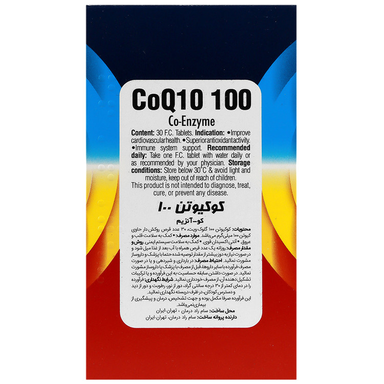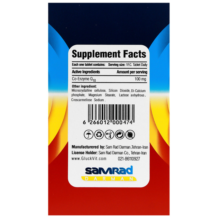 - هر قرص حاوی 100 میلی گرم Co-Enzyme Q10