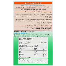 این فراورده صرفا مکمل بوده و جهت تشخیص، درمان و پیشگیری از بیماری نمی باشد. موارد احتیاط: در دوران بارداری یا شیردهی و یا در صورت مصرف سایر داروها حتما قبل از مصرف فراورده با پزشک یا داروساز خود مشورت نمایید. در صورت بروز هرگونه عارضه جانبی مصرف فراورده را قطع و با پزشک خود مشورت کنید.