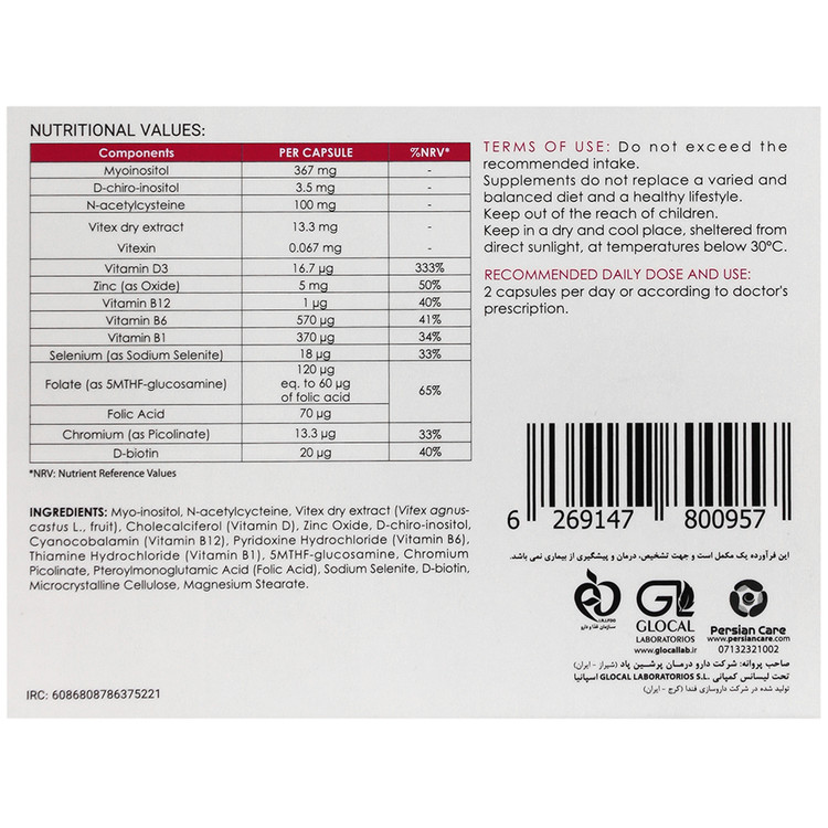 - فیتوفمین گلوکال، حاوی میواینوزیتول و دی-کایرواینوزیتول در کنار ان-استیل سیستئین و عصاره گیاه پنج انگشت
