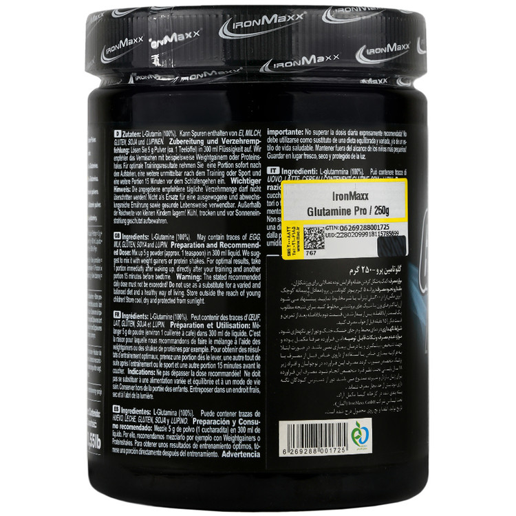 - گلوتامین ایرون مکس، مکمل تغذیهای حاوی 100% پودر خالص ال گلوتامین