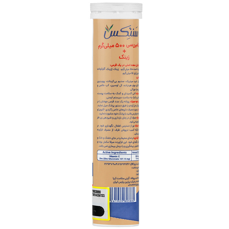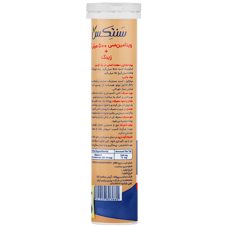 - ویتامین سی و زینک سنتکس، حاوی 500 میلی گرم ویتامین C به همراه 15 میلی گرم زینک گلوکونات