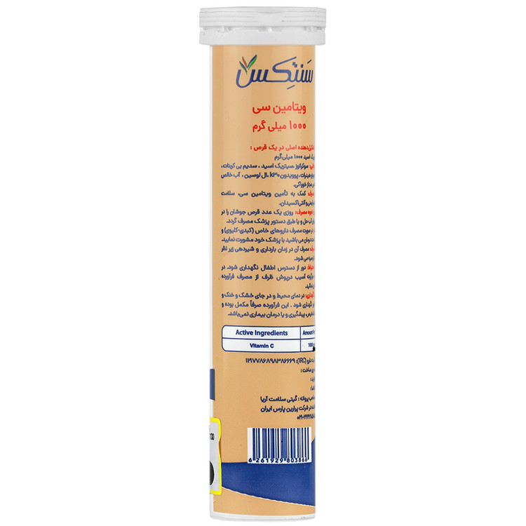 - قرص جوشان ویتامین سی سنتکس، دارای اثرات آنتی اکسیدانی و کمککننده به محافظت از سلولها در برابر رادیکالهای آزاد
