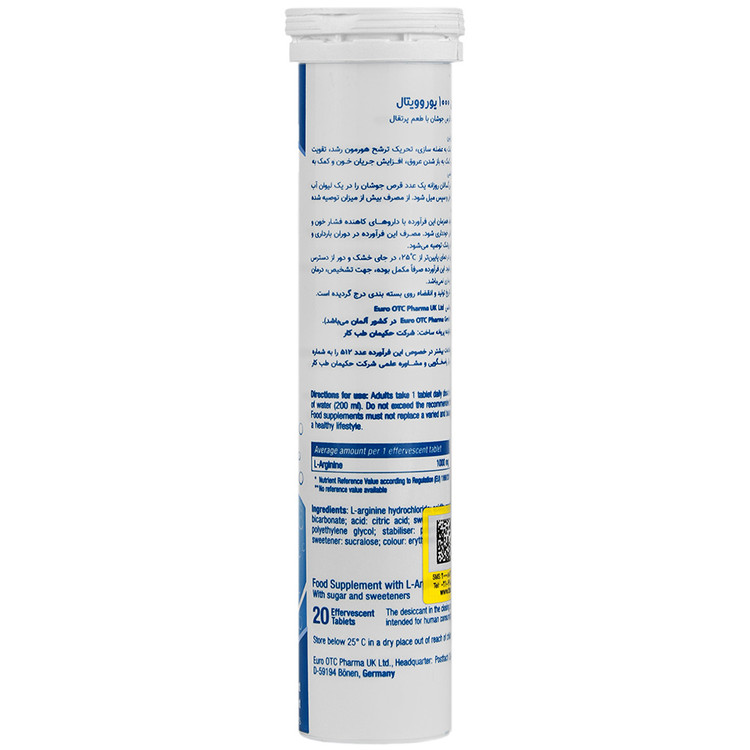 آرژینین آمینو اسیدی است که در بدن نقشهای مهمی ایفا میکند. این آمینو اسید در غذاهای پر پروتئین وجود دارد و در بدن نیز سنتز میشود. در شرایطی که نیاز به آرژینین افزایش مییابد، مصرف مکملهای غذایی حاوی آن توصیه میشود. قرص جوشان ال-آرژینین یوروویتال حاوی 1000 میلیگرم آمینو اسید ال-آرژینین با طعم پرتقال است که به بهبود عملکرد ورزشی، تنظیم جریان خون، تقویت سیستم ایمنی و بهبود نعوظ کمک میکند. ال-آرژینین، فرم فعال فیزیولوژیکی آرژینین است که از تجزیه پروتئینها بهدست میآید.