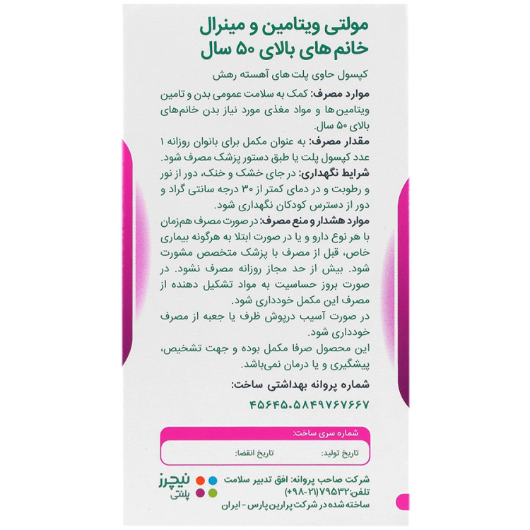 به عنوان مکمل برای بانوان، روزانه 1 عدد کپسول پلت یا طبق دستور پزشک مصرف شود.