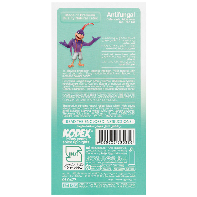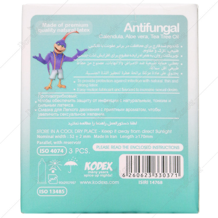 - کاندوم کدکس ضد قارچ، حاوی لوبریکانت روانکننده و کاهش اصطکاک