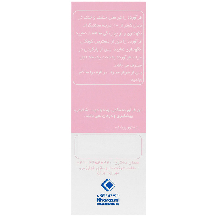 - مصرف در دوران بارداری و شیردهی: این فراورده در دوران بارداری و شیردهی با احتیاط و زیر نظر پزشک معالج مصرف شود.