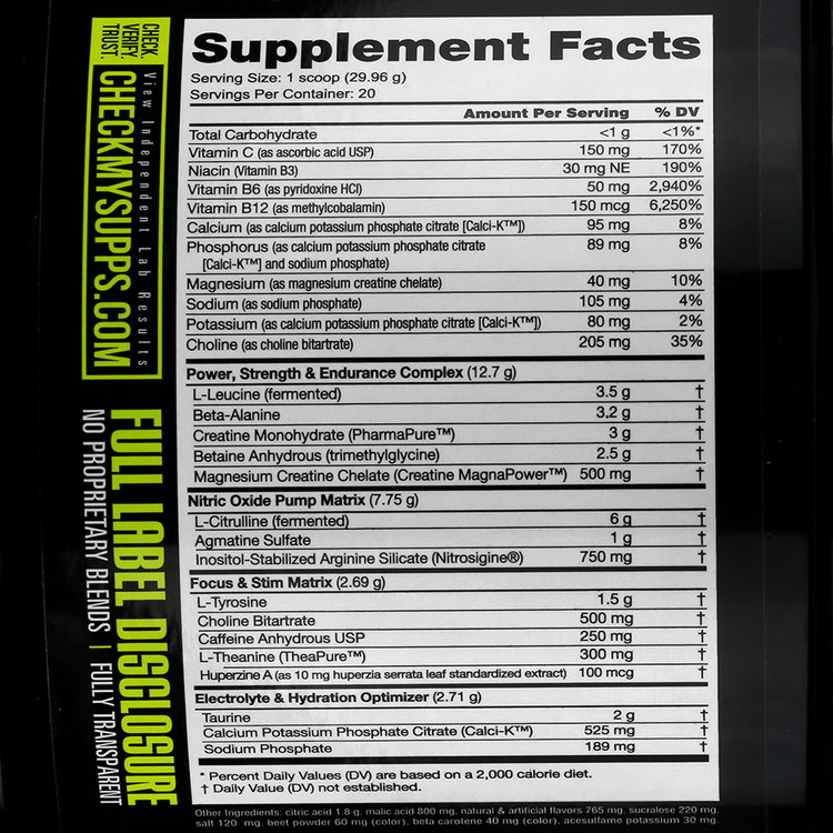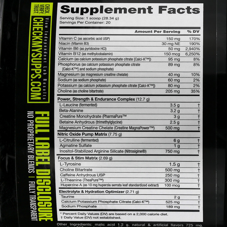 هشدار مصرف:- موارد منع مصرف و احتیاط: مصرف این فراورده در افراد زیر 18 سال و افرادی که به کافئین حساسیت دارند، توصیه نمی گردد. از مصرف همزمان فراورده با سایر ترکیبات حاوی مقادیر بالای کافئین و همچنین غذاها و نوشیدنی های محرک به علت احتمال بروز اضطراب، تحریک پذیری، بی خوابی و افزایش ضربان قلب خودداری نمایید. در صورت مصرف سایر داروها و یا ابتلا به بیماری های خاص (نارسایی های کلیوی، کبدی و یا قلبی)، سندروم التهابی روده، انسداد مزمن ریوی، انسداد مجاری ادراری و گوارشی، زخم های گوارشی و تشنج قبل از مصرف با پزشک خود مشورت نمایید. در صورت مشاهده هرگونه عارضه جانبی، مصرف فراورده را قطع و با پزشک خود مشورت نمایید. به علت وجود کراتین در فراورده، روزانه 2 تا 4 لیوان آب بیشتر مصرف نمایید. از مصرف فراورده در دوران بارداری یا شیردهی و همچنین در شرایط گرمای شدید؛ فشار قلبی ناشی از ورزش و کم آبی بدن خودداری نمایید. قبل از مصرف با پزشک خود مشورت نمایید. دو هفته قبل از هرگونه جراحی مصرف فراورده قطع گردد. در صورت مشاهده هرگونه عارضه جانبی، مصرف فراورده را قطع و با پزشک خود مشورت نمایید.