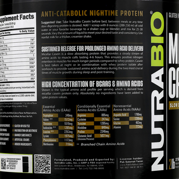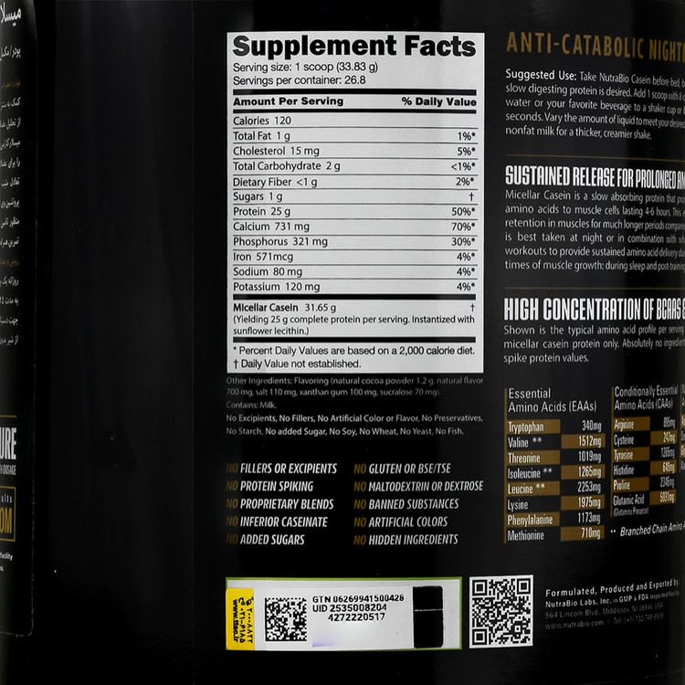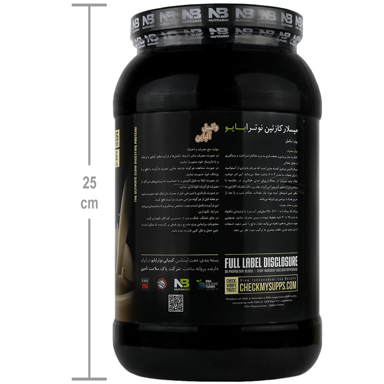 - میسلار کازئین نوترابایو مکمل ورزشی جهت کمک به عضلهسازی و جلوگیری از تحلیل عضلات