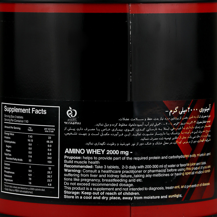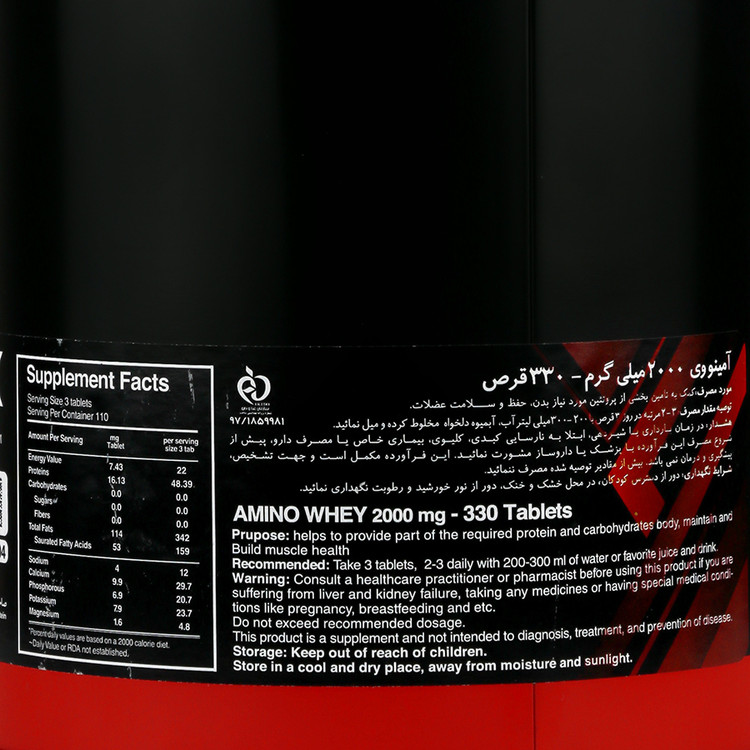 - آمینو وی 2000 لوکس ساپلیمنت حاوی اسیدهای آمینه ضروری و غیر ضروری برای رشد عضلانی