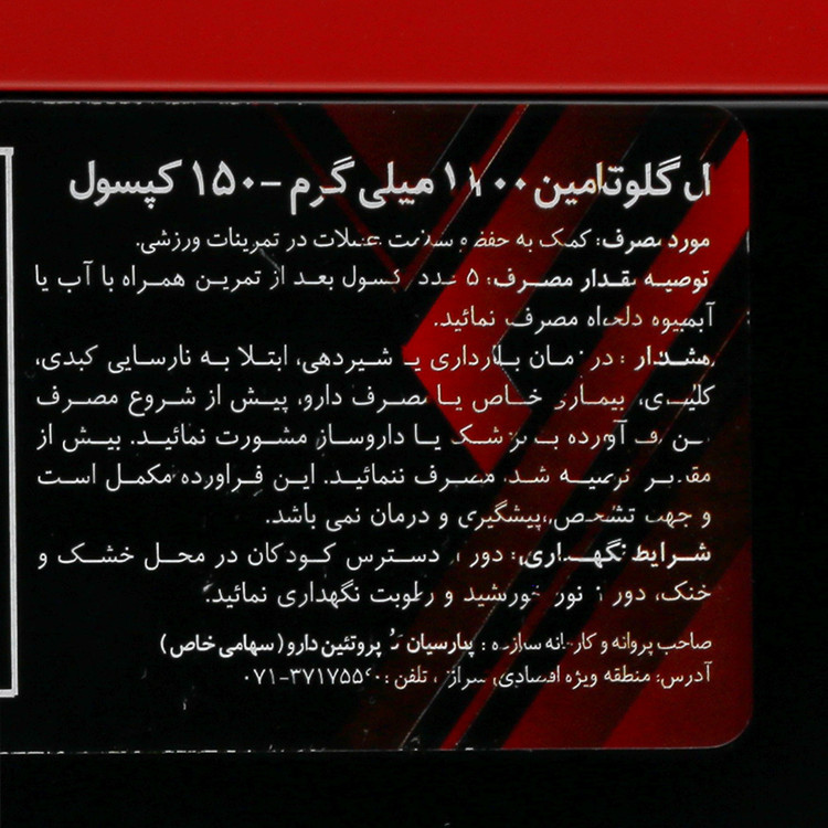 - ال گلوتامین 1100 میلی گرم، دارای اثرات مطلوب در حفظ سلامت عضلات
