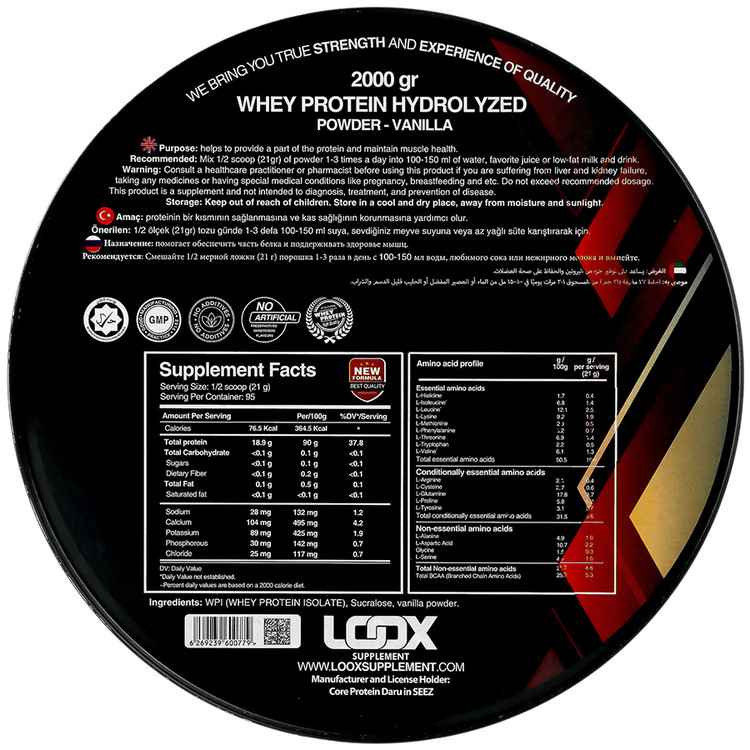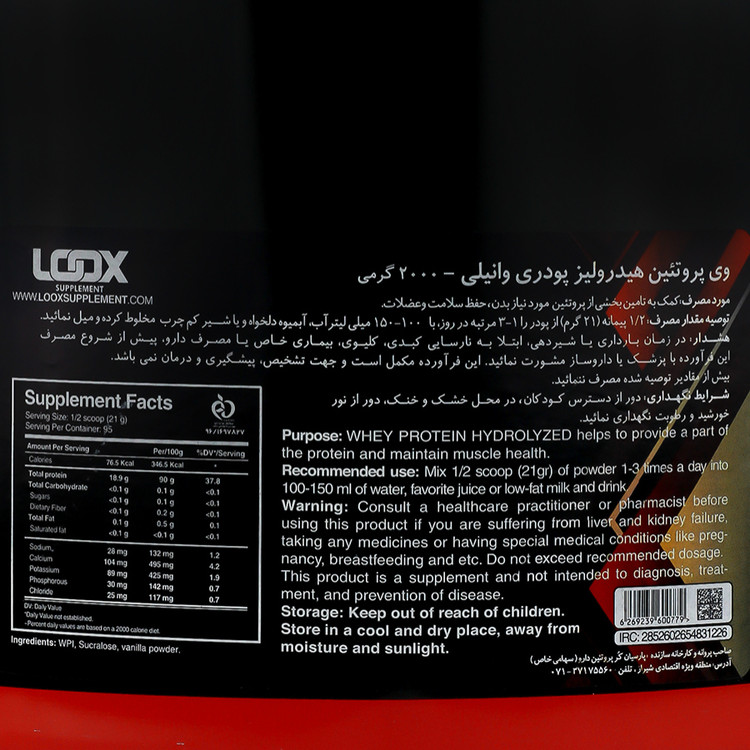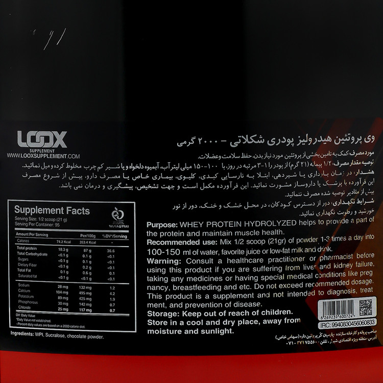- وی لوکس، حاوی 19 گرم پروتئین whey هیدرولیز شده در هر سروینگ