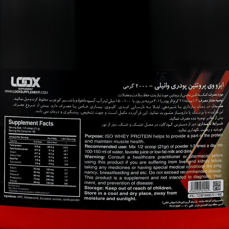 - ایزو وی پروتئین لوکس، مکمل تغذیهای دارای پروتئین وی ایزوله به همراه مواد معدنی