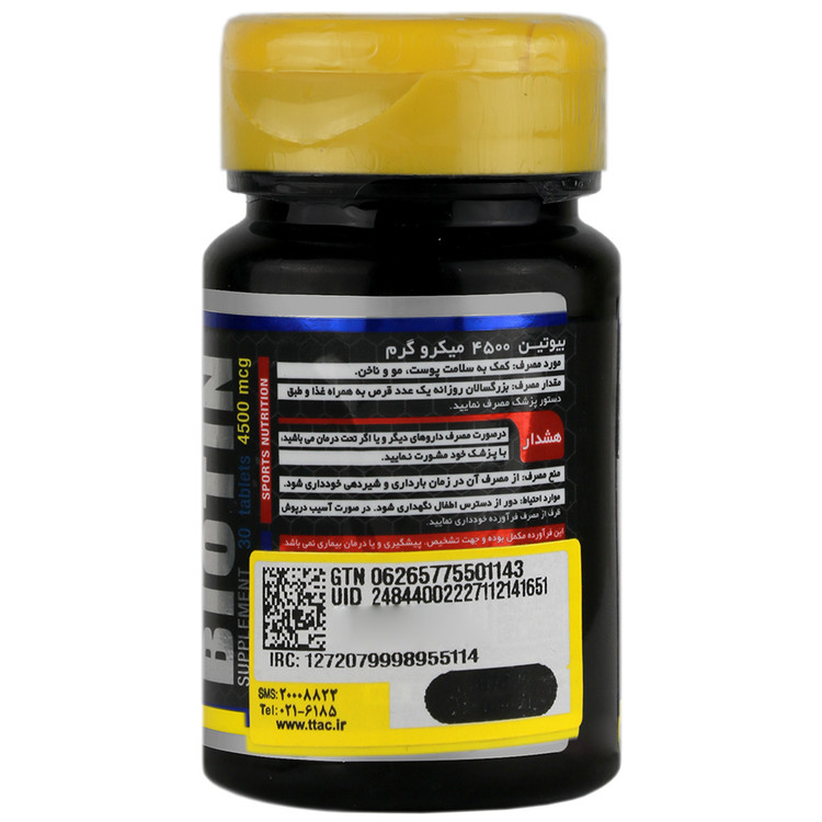 - هر قرص حاوی 4500 میکروگرم بیوتین