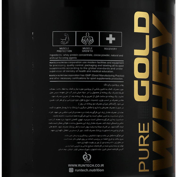 - پودر پروتئین وی گلد رانتک فاقد شکر، دارای مقادیر حداقل کربوهیدرات و چربی