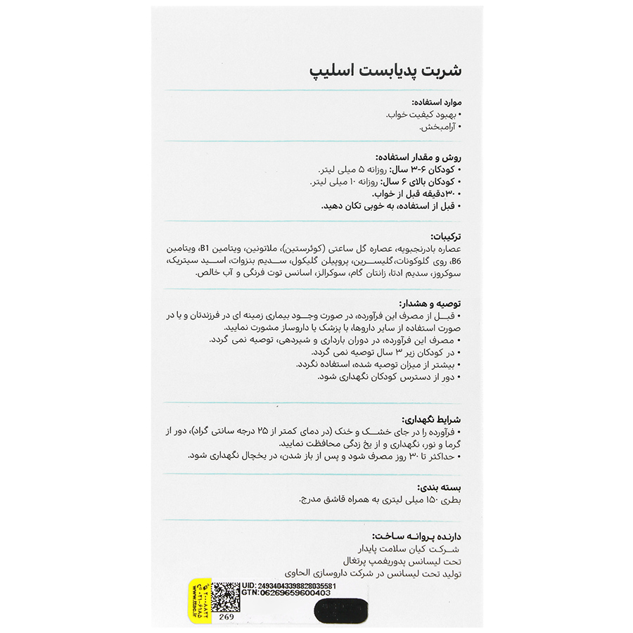 این محصول تحت امتیاز و لیسانس پدوریفمپ کشور پرتغال، دارنده پروانه ساخت شرکت کیان سلامت پایدار و در شرکت داروسازی الحاوی در ایران تولید شده است.