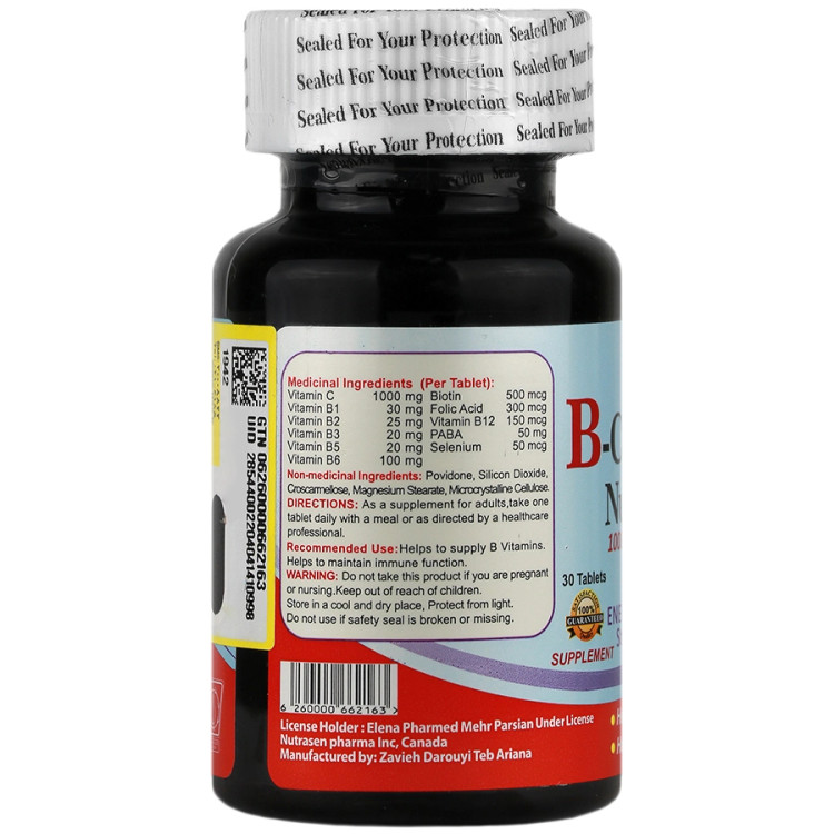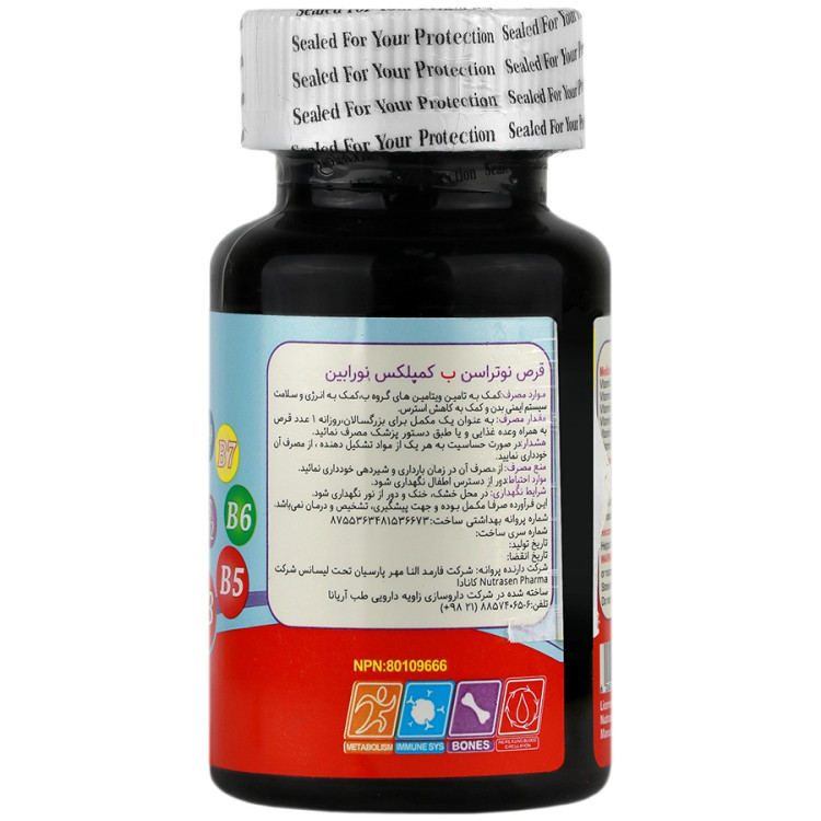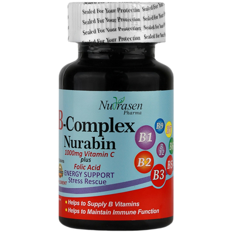 ب کمپلکس نورابین نوتراسن 30 قرص B-Complex Nurabin Nutrasen 30Tablets، دارای ویتامینC و گروه ویتامینB می باشد. ب کمپلکس نورابین نوتراسن، با تأمین ویتامین های گروه ب به حفظ متابولیسم طبیعی بدن نیز کمک می نماید. نورابین نوتراسن، سلامت عمومی بدن را حفظ کرده و به تقویت عملکرد سیستم عصبی مرکزی، تقویت حافظه و تولید انرژی مورد نیاز بدن کمک کرده و ضعف و خستگی بدن را کاهش و به افزایش سطح انرژی کمک می نماید.