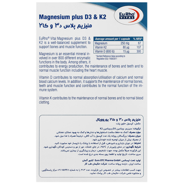 منیزیم پلاس د3 و کا2 یوروویتال