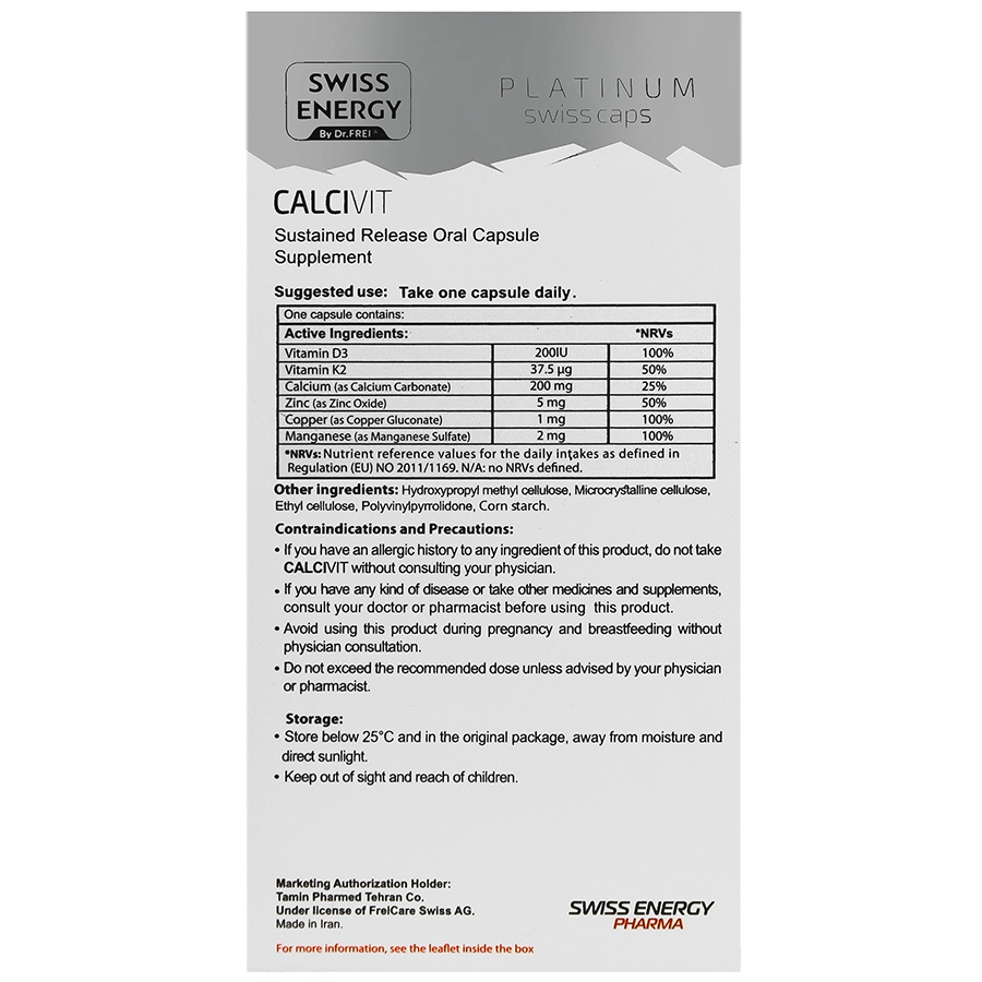 - حاوی کلسیم، ویتامین D3، K2، زینک، مس و منگنز