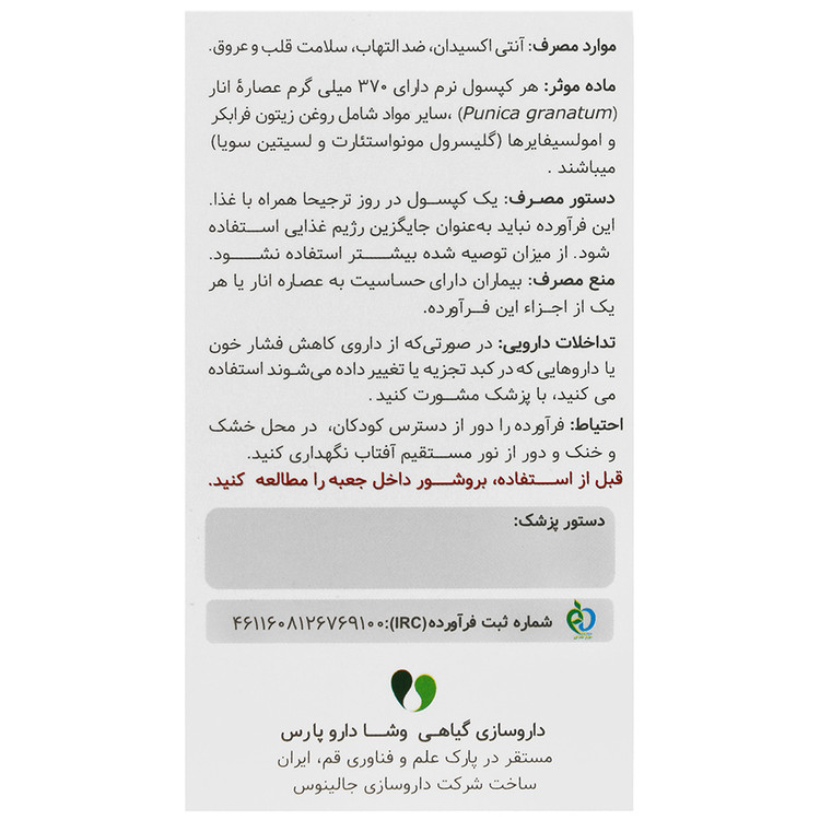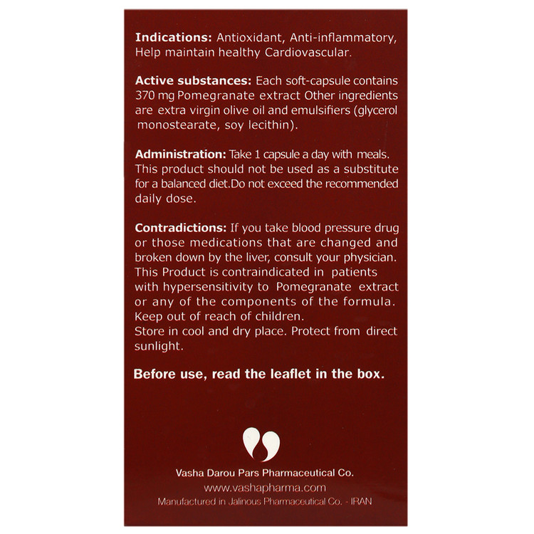 - هر کپسول نرم دارای 370 میلیگرم عصاره انار