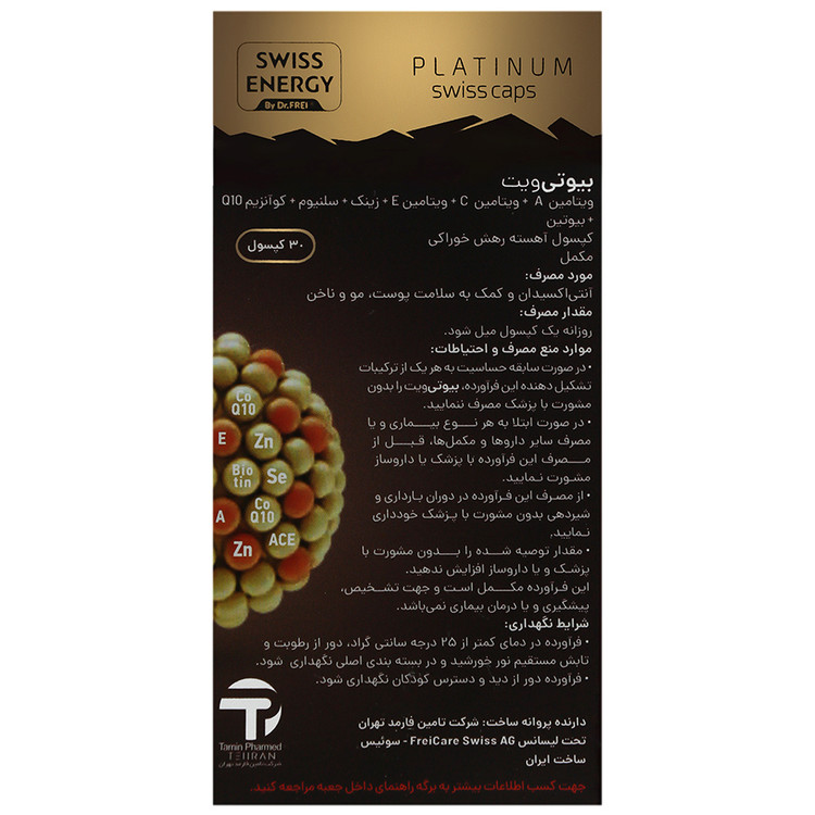 - حاوی ویتامین های A ،C ،E، زینک، سلنیوم، کوآنزیم Q10 و بیوتین